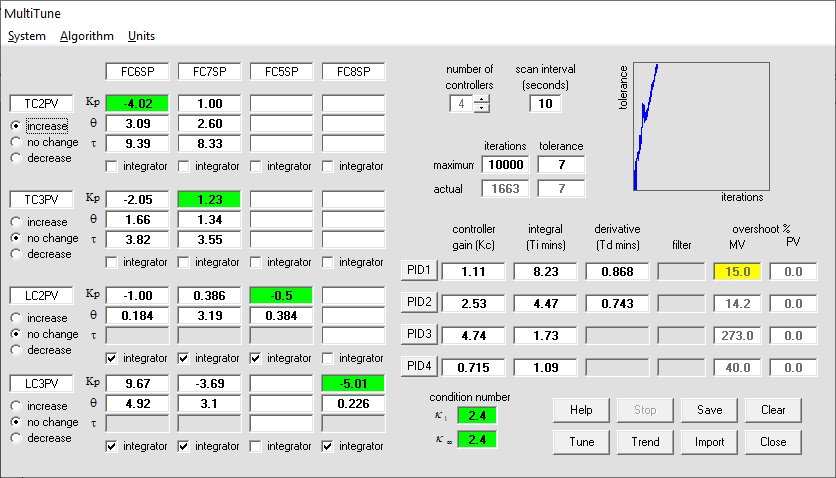 As with the single PID tuner, the tool supports the leading control systems and permits the user to select the options supported by that system. Similarly the user can place limits on any tuning constant, and on MV and PV overshoot.