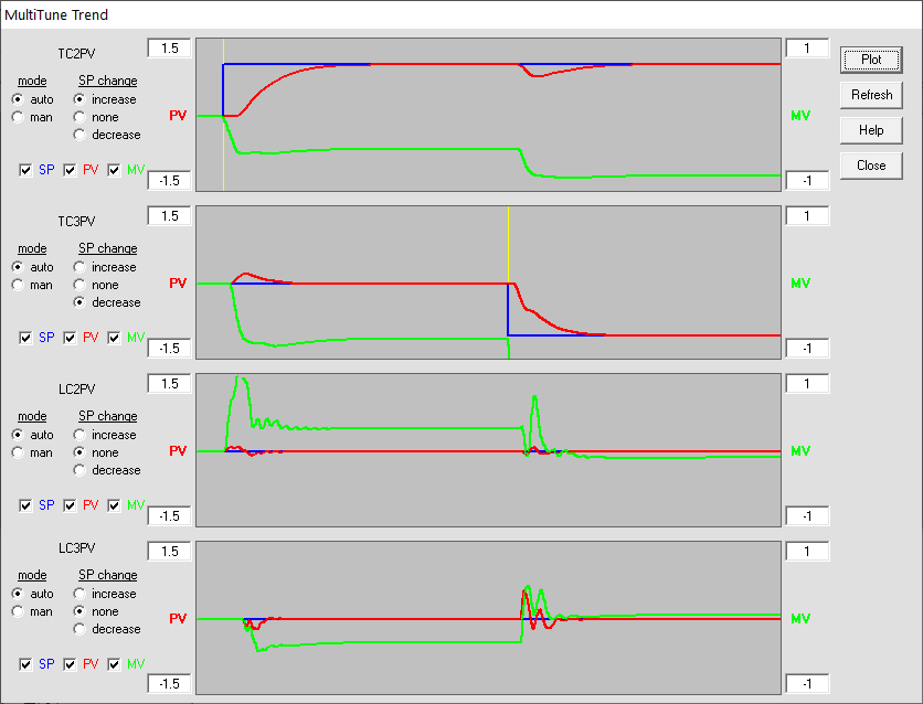 This tool is an extesion of the PID Tuner. It will simultaneously tune up to four PID controllers, taking account of any interactions between them. It is intended for use where the level of interaction is mild. Using the same techniques as the MPC Matrix Analysis tool, it will first check that the controllers are correctly paired and that a stable solution exists.