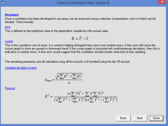 A wide range of linear and non-linear functions, involving few or many process measurements can quickly be evaluated. Analysis statistics and graphical functions allow the user to easily identify suspect measurements and remove them. Time dependent performance statistics can be used to identify any systematic changes in accuracy and permit laboratory update functions to be optimised.