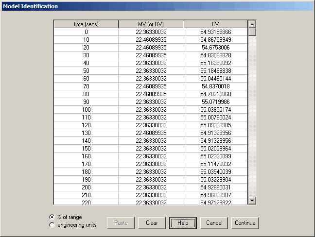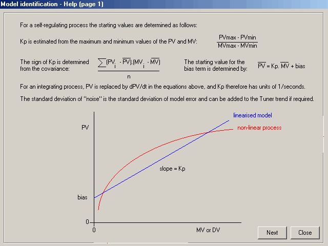 This fits a dynamic model to process data collected during plant testing. It can be applied not only to the simulated processes but can import data, via spreadsheets, from real plant tests. The model derived can be transferred to the tuning package in order to optimise controller tuning.
